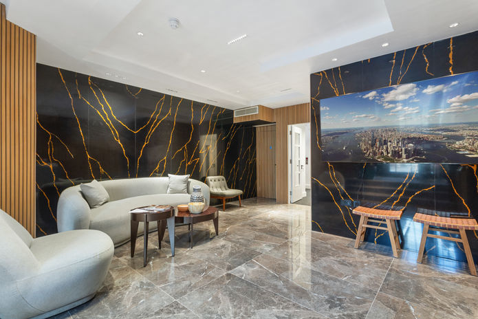 The penthouse's contemporary modern style is exemplified by clean lines, premium materials, and a neutral color palette.